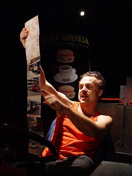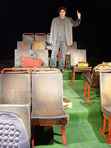 Současná americká komedie se odehrává v autobusu, patnáct minut před vyjetím z výchozí stanice. Sejde se zde osmice náhodně se potkávajících svérázných postav z různých společenských vrstev: misionář, důchodkyně, bezdomovec, schizofrenik, vysokoškolský student a další. Co všechno se může v autobusu přihodit, a jak nečekané rozuzlení může taková komedie mít, zjistíte v inscenaci režiséra Davida Vackeho a hlavního představitele Tomáše Šulaje. Hrou, kde se v roli všech postav objeví jeden jediný herec, se na scénu Slováckého divadla vrací populární žánr monodramatu.