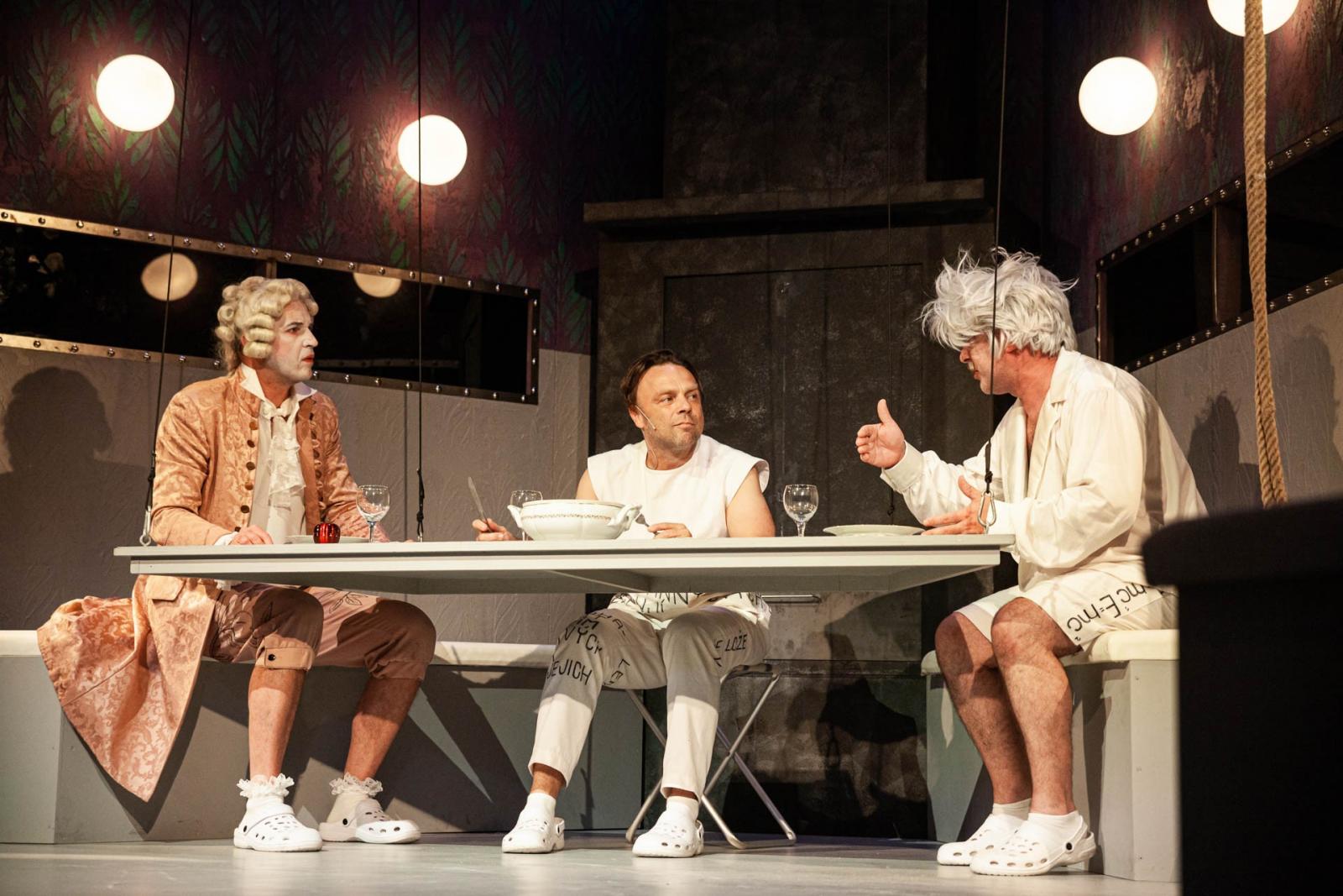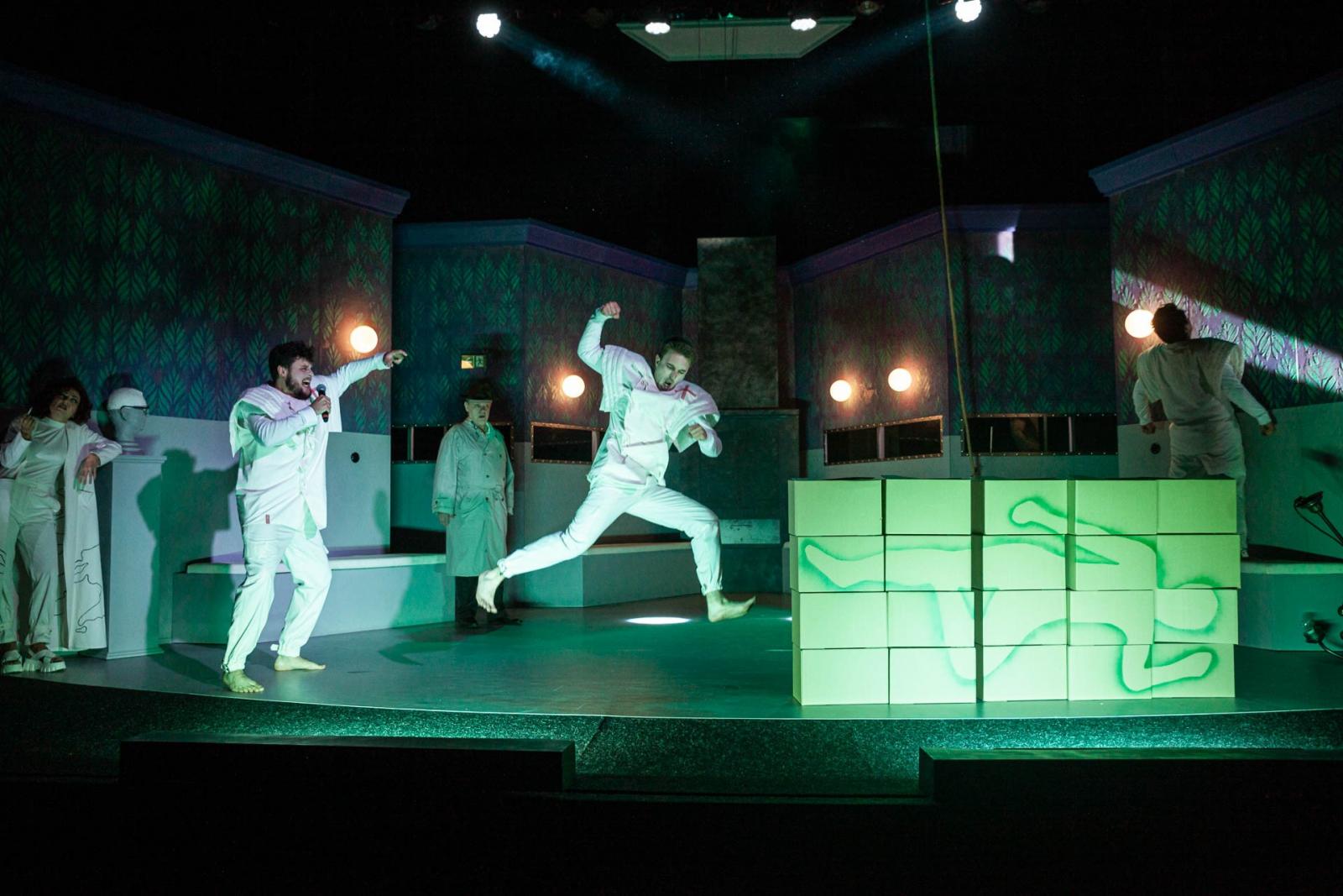 Hra v režijním nastudování uměleckého šéfa Lukáše Kopeckého nastolí více než půl století od svého vzniku aktuální a nadčasovou otázku: Nakolik je vědec odpovědný za dopady svých vynálezů? Obsah objevů se totiž týká objevitelů, jejich důsledky ale postihují celé lidstvo...