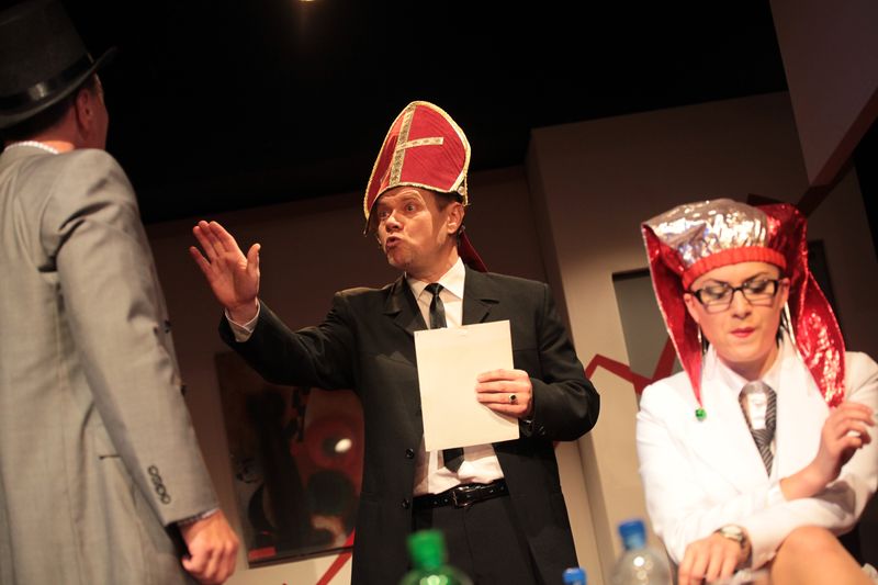 Současná španělská komedie s prvky psychothrilleru. V kanceláři jisté nadnárodní společnosti se sejdou čtyři uchazeči o zaměstnání. Výběrové řízení však začne poněkud zvláštně - přítomným je oznámeno, že jeden z nich je utajený personalista firmy, který má za úkol vybrat toho nejlepšího. A zazní i první úkol: uchazeči mají odhalit, kdo z nich to vlastně je, a ze své společnosti ho vyloučit. Okamžitě se rozehraje napínavé drama plné vážných i komických situací. Sledujeme nejen zápas o to, „kdo je kdo“, ale také „kdo s koho“, neboť doba je tvrdá a vidina získání lukrativně placeného místa ve vedení firmy je pro každého více než lákavá. Jak se odhalí charaktery jednotlivých aktérů? Kam až jsou lidé při honbě za ziskem ochotni zajít? Jak tvrdý nátlak snesou? Bravurně napsané dialogy i napínavá zápletka dávají vědět, že je to vynikající příležitost pro herecké umění, ostatně hra byla roku 2005 zfilmována a dočkala se velkého diváckého úspěchu. Situace jsou často velmi směšné, ale vzápětí nám dochází jejich tragický důsledek a smích na rtu mrzne… Aktuální téma hry je totiž znepokojivou zprávou o stavu současné lidské společnosti.
