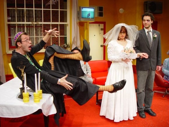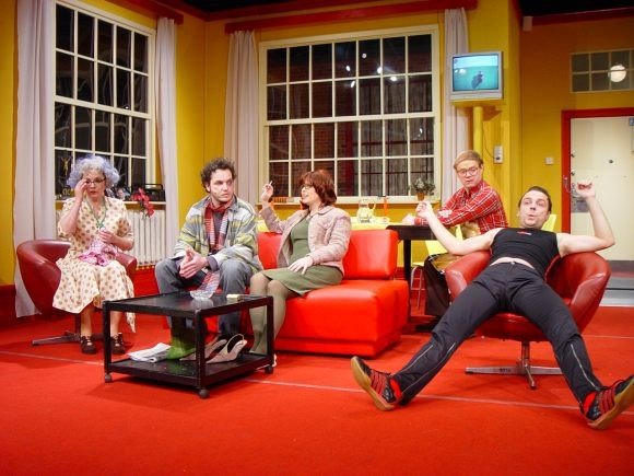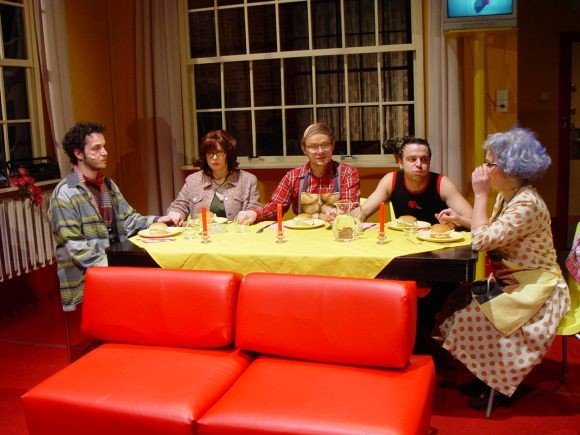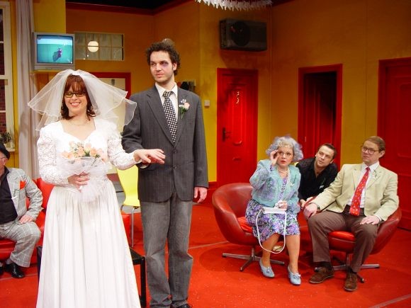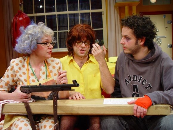Bizarní komedie nás zavádí mezi členy moderní velkoměstské rodiny: matriarchální matka a ušláplý otec už zcela nejsou s to vyrovnat se se současnou životní realitou. Jejich dcera Patsy je typem silné dívky s potřebou převychovávat své nápadníky a syn Kenny se zase snaží vyrovnat se svou tajenou homosexualitou. Matka zoufale usiluje o to udržet dojem rodiny a všichni bojují o vlastní soukromí, které je narušováno neustálými psychopatickými telefonáty a zvuky všudypřítomné střelby v ulicích. Chystá se svatba Patsy se snoubencem Alfrédem, chlapíkem, který má recept na to, jak chodit po nebezpečných ulicích - nejlepší je nechat se zmlátit a při tom si snít. Zločiny ve městě se hromadí - poručík místní policie má podezření, že se jedná o rozsáhlé spiknutí. Americký karikaturista a žurnalista Jules Feiffer si na svou pekelně satirickou mušku vzal moderní svět, v němž se násilí, terorismus a ztráta soukromí staly atributy každodenního života. Své postřehy "obrátil naruby", zpracoval formou černě humorné nadsázky, a na diváky zaútočil výsostně komickou formou. Hra byla napsána v padesátých letech, její aktuálnost však neztrácí v našem středoevropském prostoru na jasu ani dnes či dokonce např. v blízké budoucnosti. Režisér Robert Bellan slibuje po Rychlých šípech, Blbci k večeři a Výstřelech na Broadwayi opět ironicky groteskní, lehce parodickou podívanou.