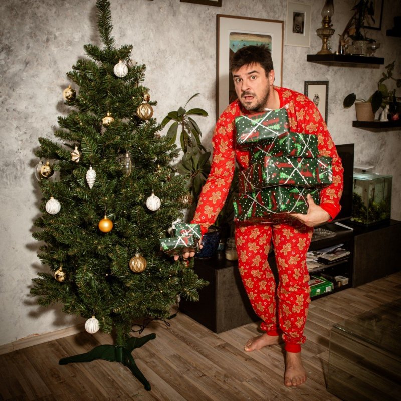 „Fotili jsme doma u produkčního Štěpána Goiše Pavlici, kde už bylo všechno krásně vánočně načančané. Dostal jsem úplně nové pyžamo, které se pak pravděpodobně přesune do divadelního fundusu. Zadání od fotografa Kuby Jíry znělo: ,Přistižen!'. A jinak to byla klasika jako většina focení s Kubou. Dělal cvak cvak cvak, tvař se tak, tvař se jinak, víc vyděšeně, víc překvapeně. Ve výsledku jsem měl dojem, že jsem stejně celou dobu držel stejný výraz, ale nakonec byl spokojený. Do půl hodinky bylo hotovo,“ popisuje Lukáš vánoční focení.